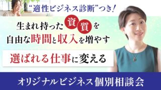生まれ持った資質を、自由な時間と収入を増やす選ばれる仕事に変えたい方へ。適性ビジネス診断つきで、あなたに合ったオリジナルビジネスの形を見つける個別相談会です。